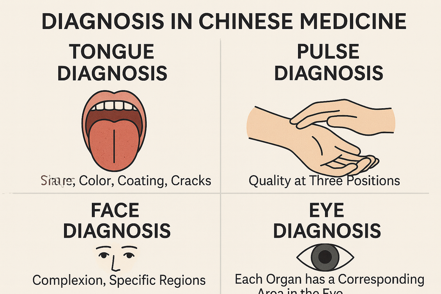 Diagnosis in Traditional Chinese Medicine (TCM) is the foundation of treatment. Illness is seen as the result of imbalance between Yin and Yang and disruptions in the flow of Qi through the meridians. Diagnosis integrates several methods, offering a complete picture of the patient’s physical, emotional, and spiritual state.